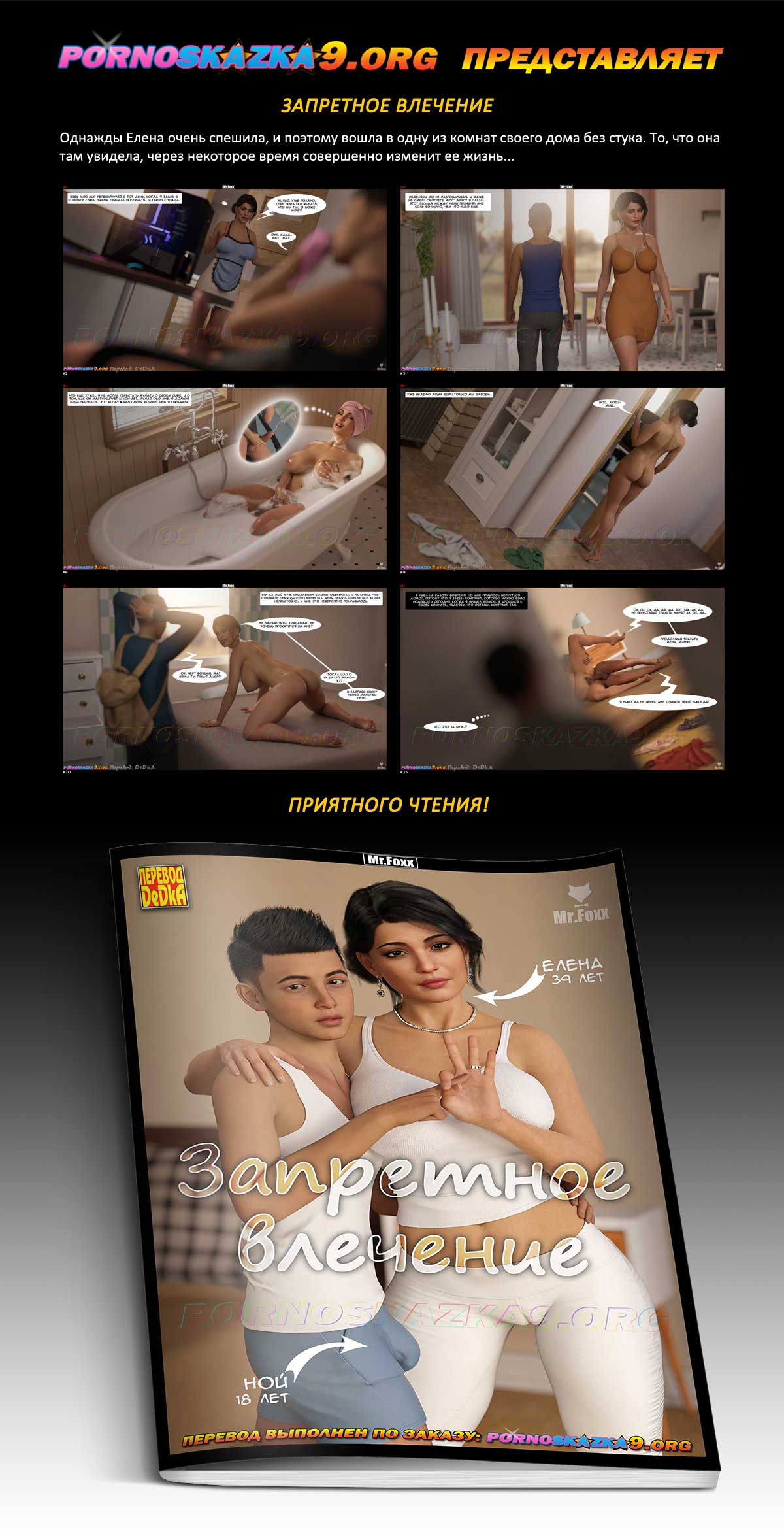 Порно комикс «Запретное влечение.» Однажды Елена очень спешила, и поэтому вошла в одну из комнат своего дома без стука. То, что она там увидела, через некоторое время совершенно изменит ее жизнь…